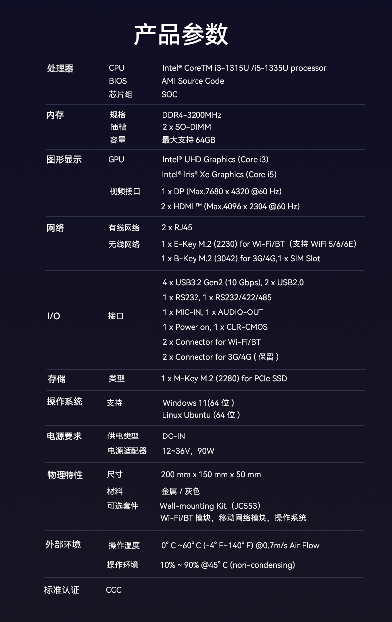 1、博天堂精品(中国)官方AE613采用密封紧凑设计,紧凑设计可以使设备更易于安装在交通场景中的有限空间内,适用于车载、道路监控、交通信号控制等应用场景,该设计有利于导热更有利于散热,并且机器功耗只有15w,能够降低对电力资源的需求,有利于节能减排,符合绿色环保的发展理念,并且较低的功耗意味着可以延长电池的使用时间,提高设备的续航能力;